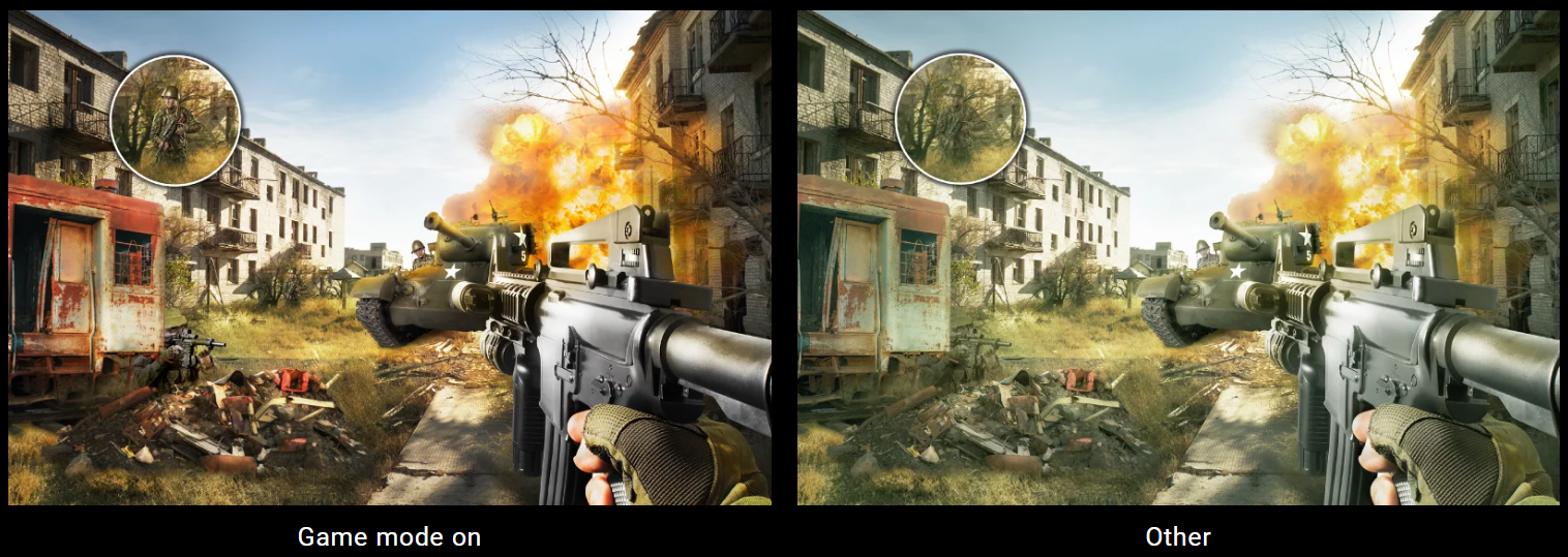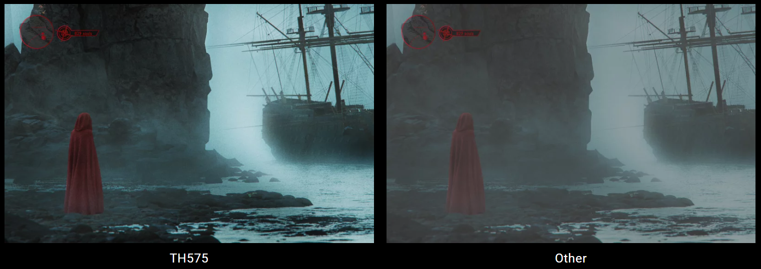 TH575’s Game Mode fine-tunes all images, enhancing dark and shadowy scenes with greater clarity and visual precision, helping you level up by spotting campers and finding every hidden secret in RPGs.