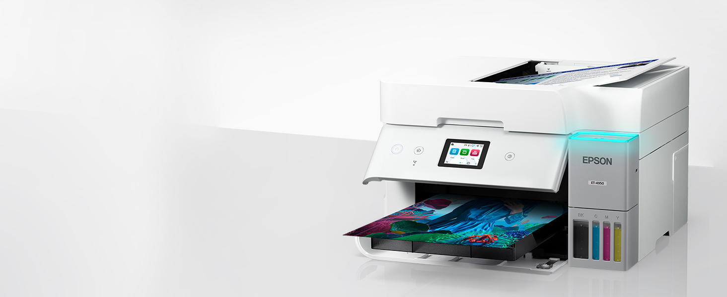 1 Actual savings of money, waste, and hassle will vary. Cost of printing (printer + ink) comparison based on included ink bottles vs. included and replacement ink cartridges over 3 years using average monthly print volumes. For more information, see epson.com/savingsinfo | 2 Based on internal cumulative sales data 2010 – 2024. | 3 Versus the ET-4850. | 4 Based on average monthly document print volumes of about 150 pages. | 5 Requires Epson Smart Panel app download. Data usage fees may apply. | 6 Most features require an Internet connection to the printer, as well as an Internet- and/or email-enabled device. For a list of Epson Connect enabled printers and compatible devices and apps, visit epson.com/connect | 7 Worldwide 2011 – 10/2024. | 8 Actual savings and costs will vary considerably based on print tasks, print volumes and usage conditions. Savings and cost per ISO page are based on the cost of replacement ink bottles and the cost of enough standard cartridges to achieve the total page yields of the bottles using the MSRP (USD) and yields for Epson standard-capacity ink cartridges for similarly featured Epson consumer inkjet printers as of March 2025. | 9 Part of the ink from the included bottles is used for initial setup; yields are lower than those of replacement ink bottles. Replacement and included ink bottle yields based on the ISO/IEC 24712 pattern with Epson’s methodology. Actual ink yields will vary considerably for reasons including images printed, print settings, temperature and humidity. Yields may be lower when printing infrequently or predominantly with one ink color. All ink colors are used for printing and printer maintenance, and all colors must be available for printing. For more information, visit epson.com/inkinfo | 10 Individual cartridges estimate based on print yields of a replacement set of black and color ink bottles as compared to Epson standard-capacity ink cartridges for similarly featured printers as of March 2025. | 11 Based on product and replacement ink bottle sales in North America 2015 – June 2021.