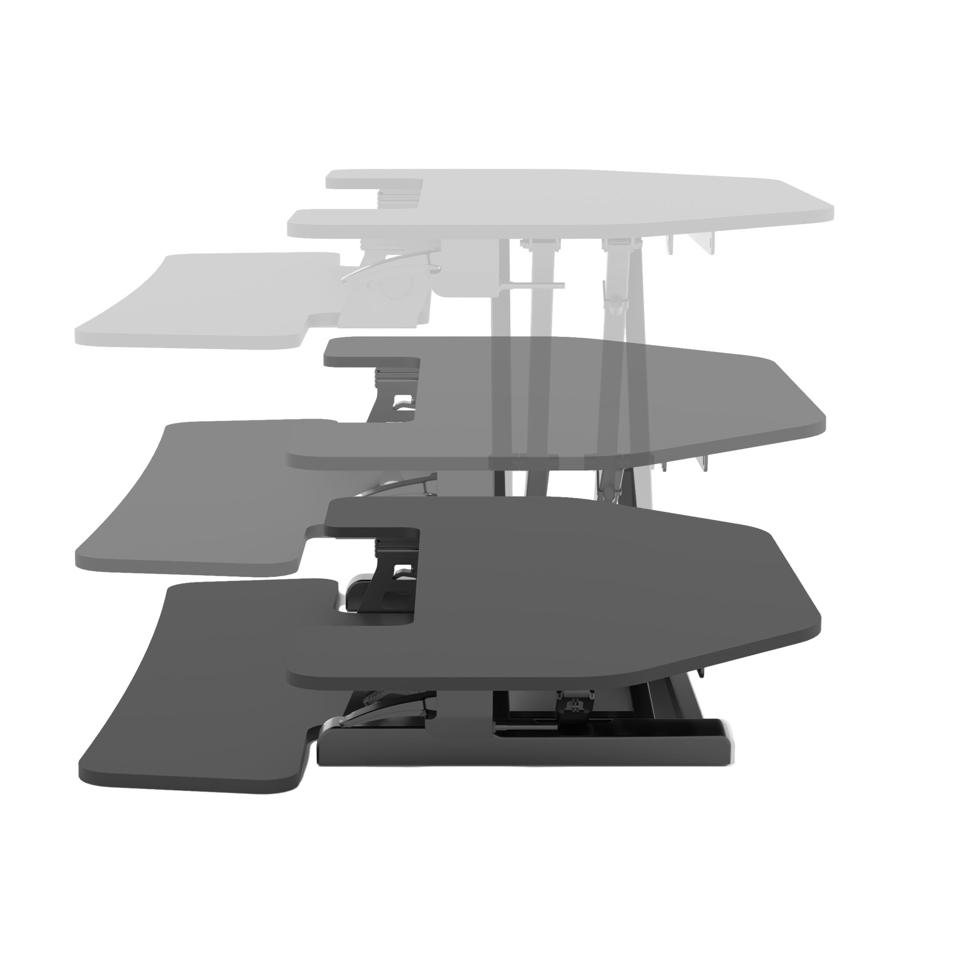 The sides are angled, enabling the riser to be placed deeper into the desk corner and give more space up front