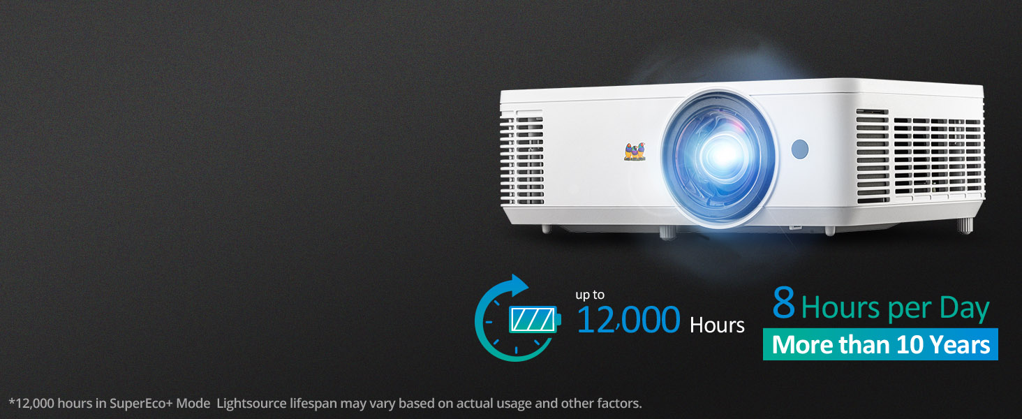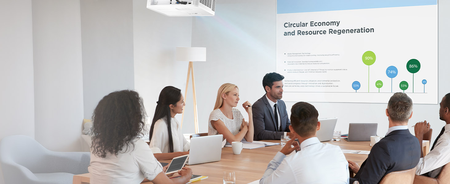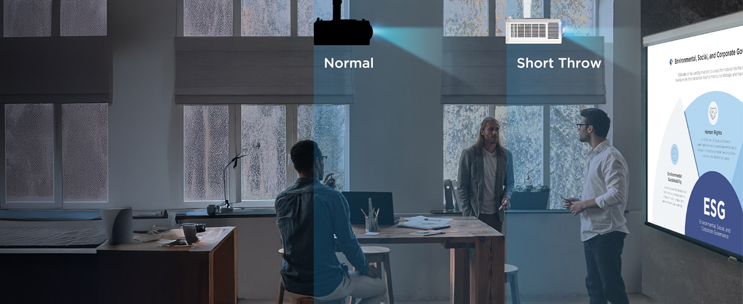Featuring 4,000 ANSI lumens of stunning brightness, this powerful business and education projector creates crystal clear images up to 300”. And with a 0.52 short throw ratio, this projector is capable of displaying shadow-free 100” images from just a few feet away.