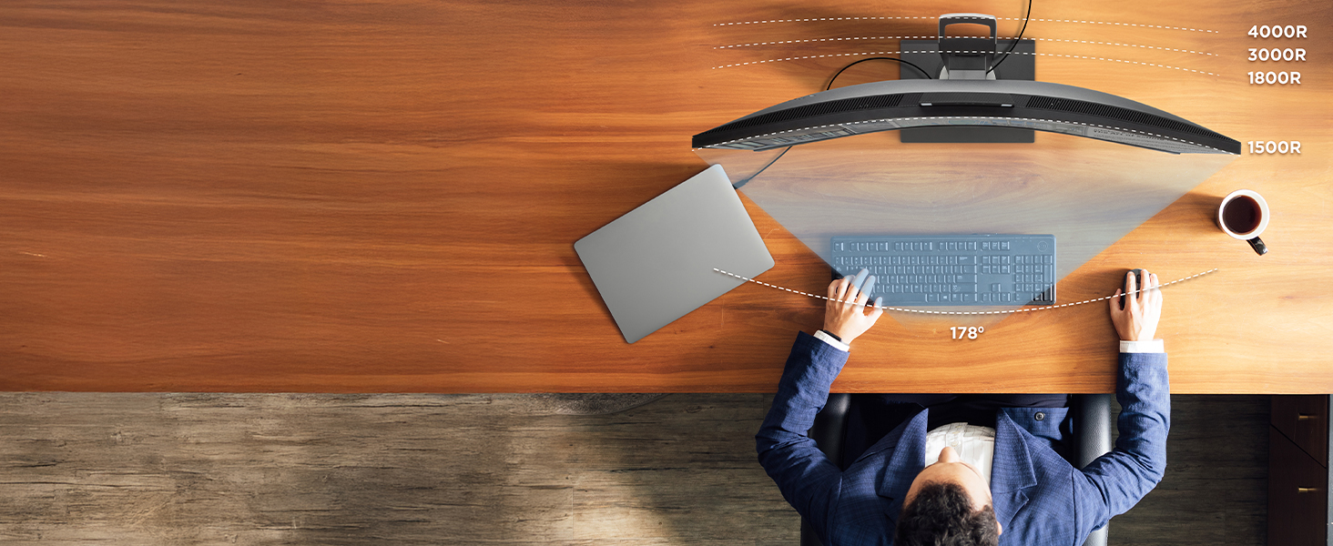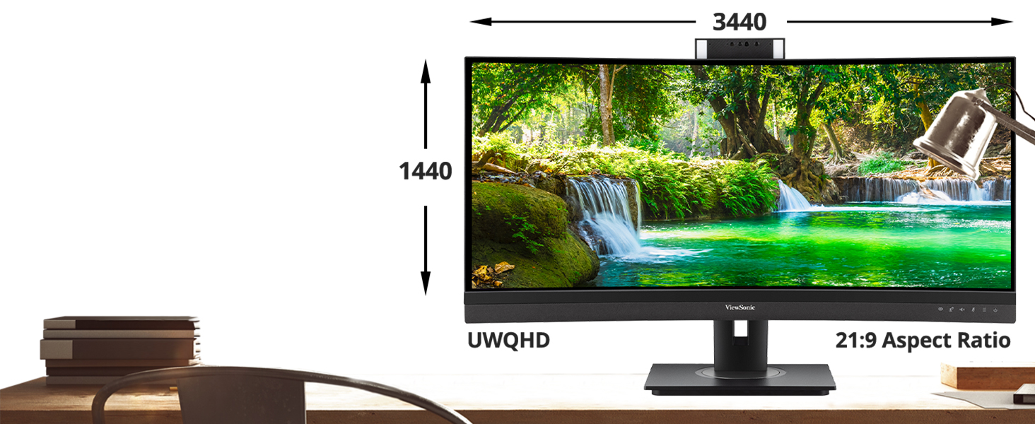34 Inch ultrawide 21:9 UWQHD (3440x1440p) curved monitor with thin bezels and 100Hz refresh rate