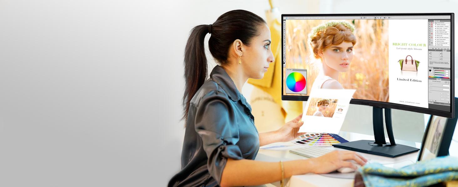A 38” screen with WQHD+ 3840x1600 resolution delivers incredible detail for true-to-life imagery. A 21:9 aspect ratio enables videos to be played and edited in full screen, without letterboxing.