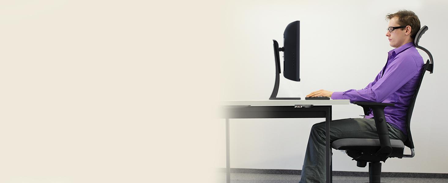 ERGONOMIC STAND: Advanced ergonomics (tilt, swivel, and height) for all-day comfort