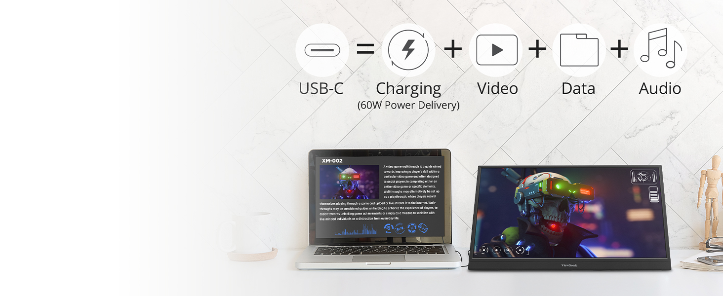 USB-C connectivity for fast data, audio and video transfer, and 60W charging over one cable