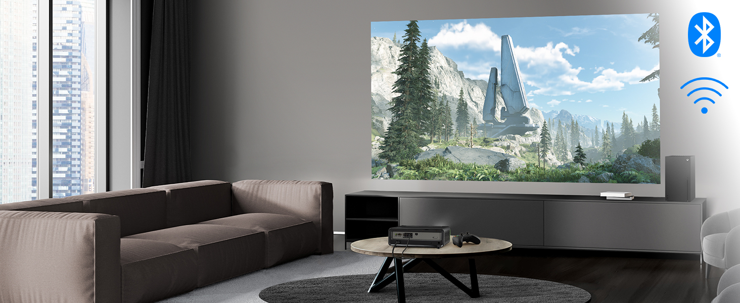 Unlock the ultimate entertainment experience with the X1-4KPro smart LED projector. This "Designed for Xbox" projector comes with integrated Google TV so you can not only play your favorite games, but also stream your favorite shows and movies in stunning 4K resolution – no external dongle required. With a fast 240Hz refresh rate, it’s built to provide ultra-smooth visuals for both high-speed action games and fast-paced movies on a screen up to 150”. This home entertainment projector was also designed in partnership with Microsoft for optimized Xbox gameplay: 1440p native Xbox resolution at a 120Hz refresh rate delivers the perfect balance between incredible visuals and accuracy for Xbox gaming. Plus, with next-generation LED technology, you can enjoy pristine image clarity for years to come without performing any maintenance or upkeep. And, with features like vertical lens shift, 1.36x optical zoom, and four-corner adjustment, you can effortlessly build the entertainment setup of your dreams. Level up the way you watch, play and relax with the X1-4KPro projector today.